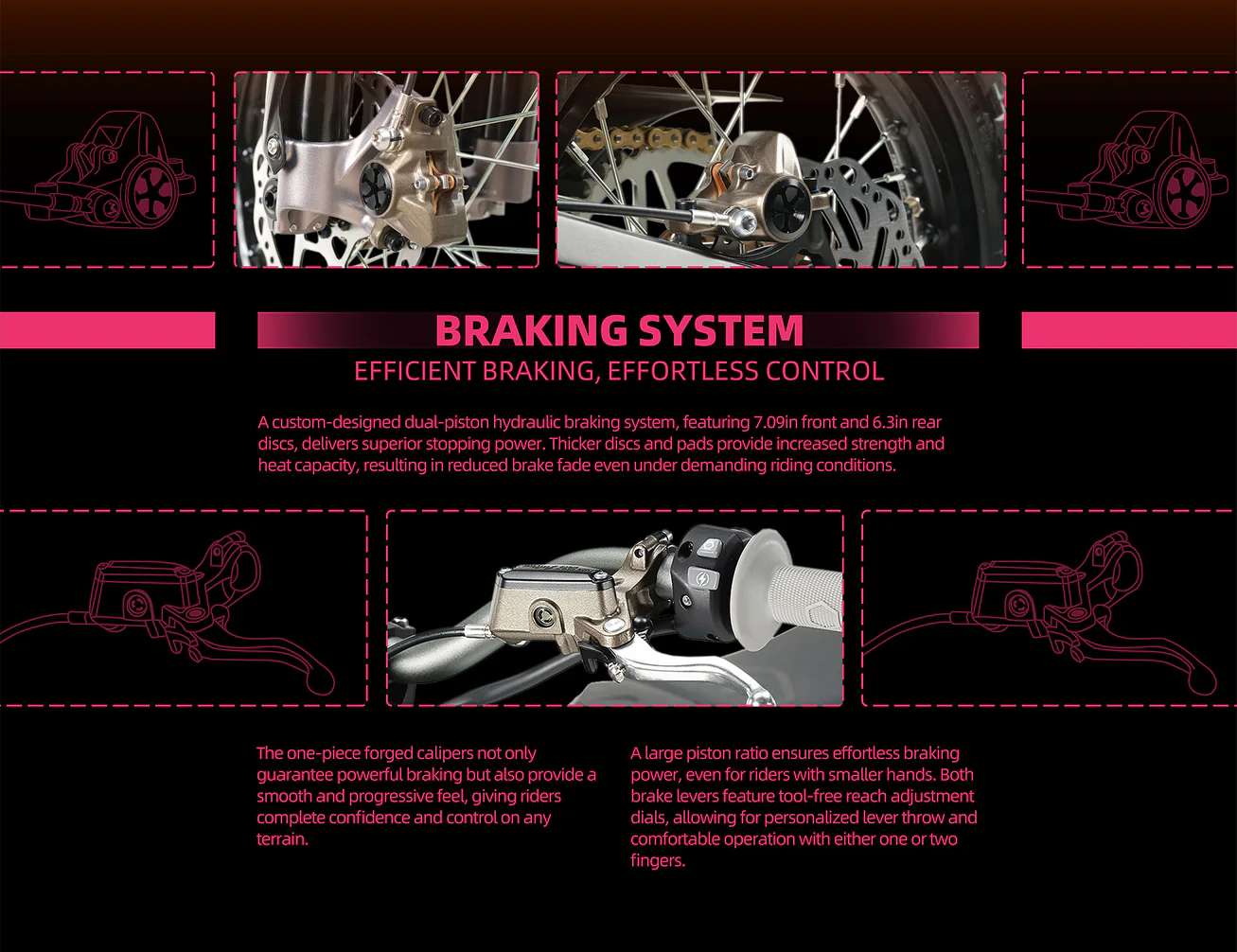 Ground Clearance: 240mm-260mm (Depending on the position adjusted by the shock absorption)